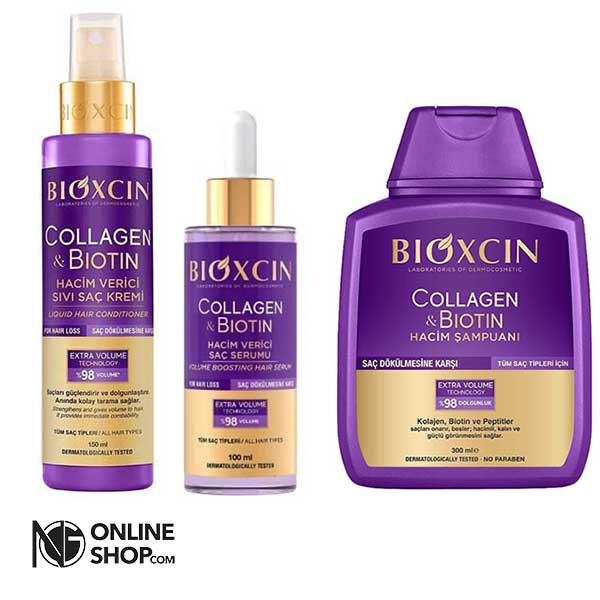 شامپو بیوکسین کلاژن+سرم کلاژن+اسپری کلاژن (ریزش و کم پشت و موی مجعد)