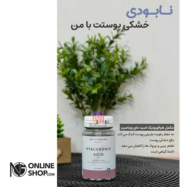 فواید قرص مکمل هیالورونیک اسید مای ویتامینز Myvitamins Hyaluronic Acid برای پوست